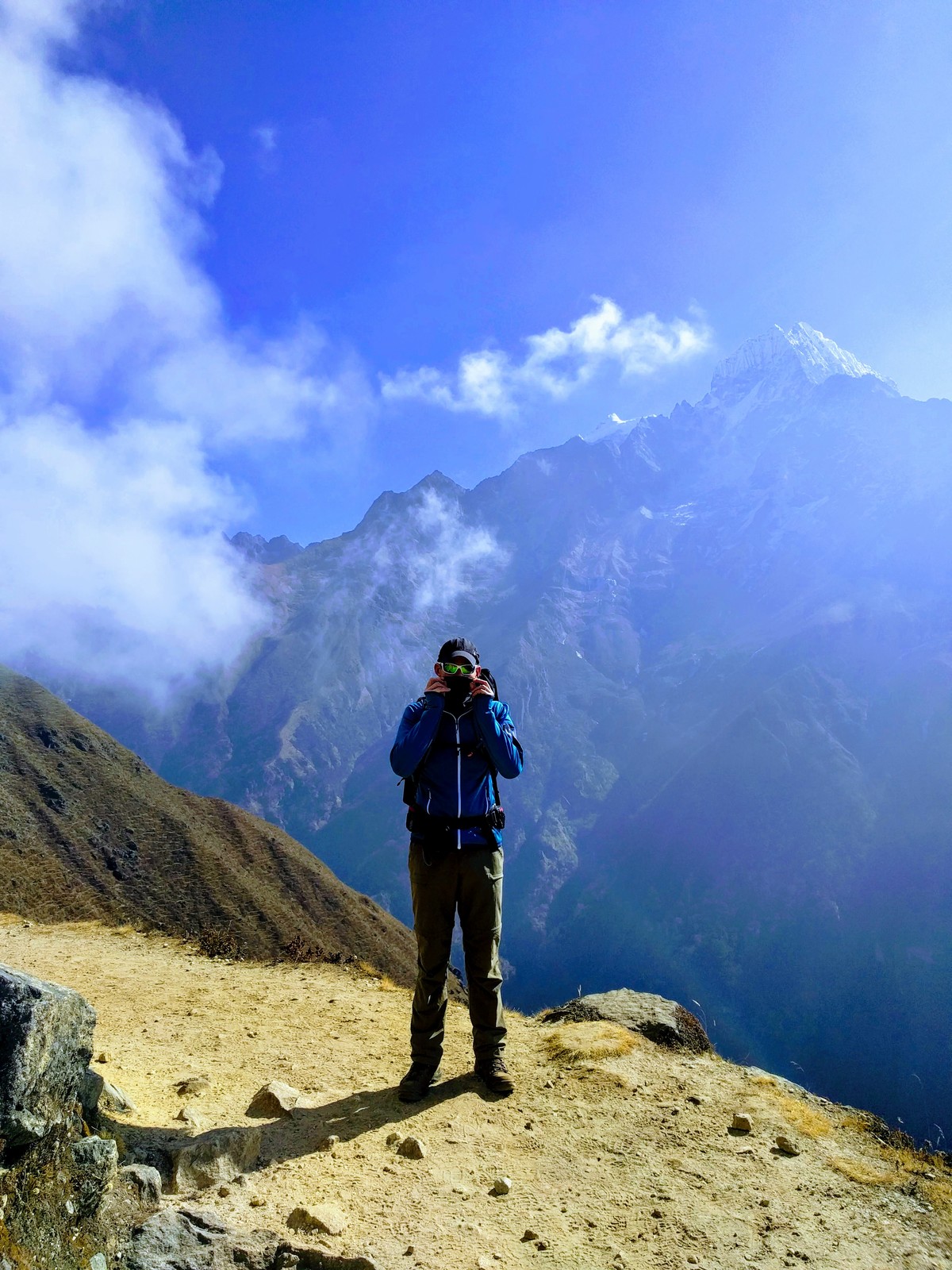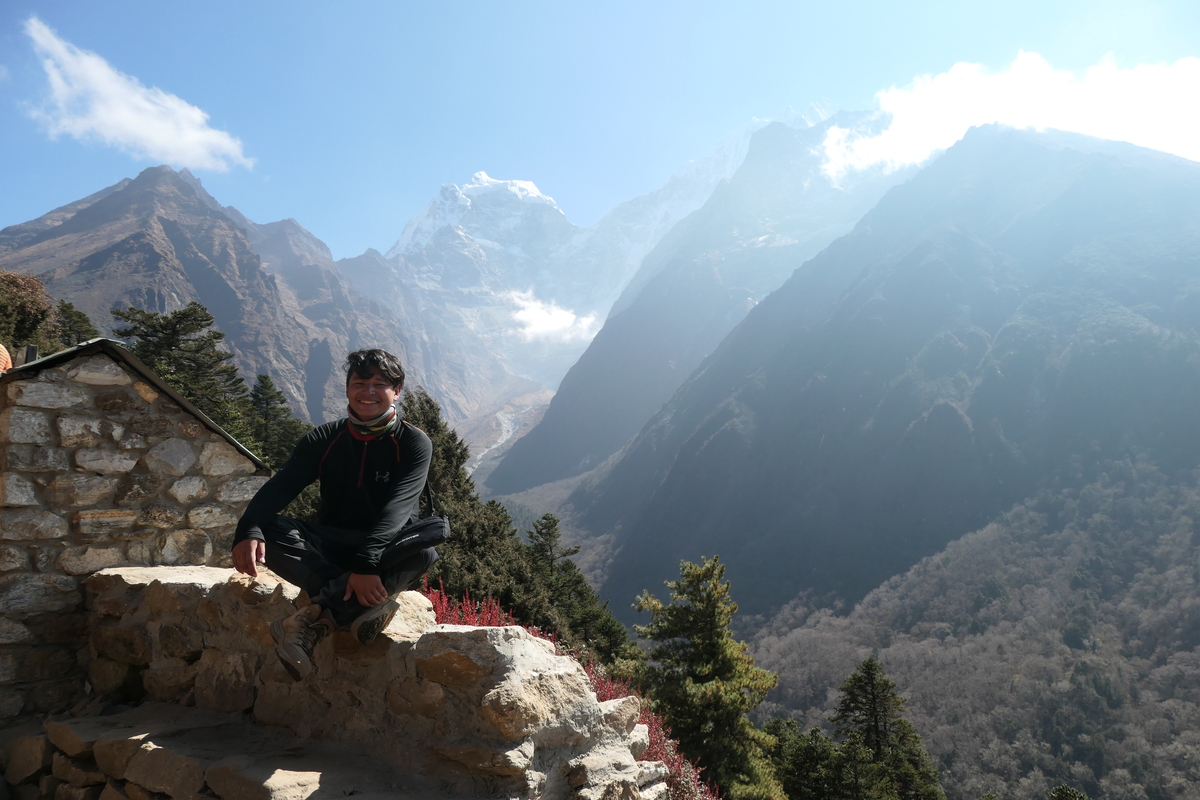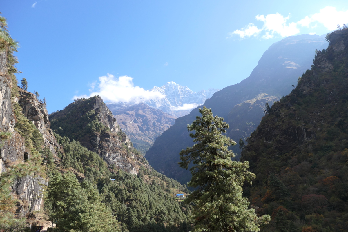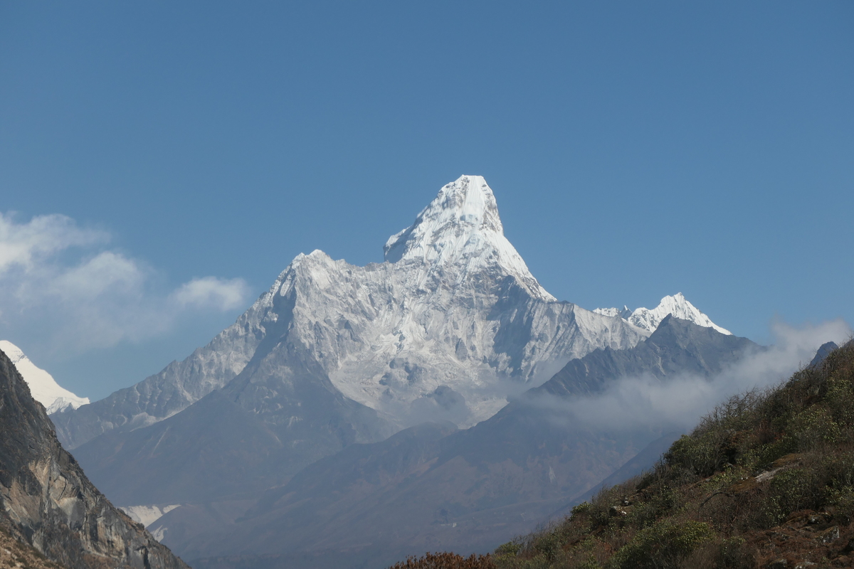 Der vierte Tag ist eigentlich als Akklimatisierungstag angedacht, dass heisst, hochwandern und wieder in Namche Bazaar schlafen. An diesem vierten Tag geht es Miri auch wieder viel besser, aber Manraj entscheidet, dass wir nicht den geplanten Akklimatisationshike zum Japanischen Teahouse machen sondern nur im Ort ein wenig hochlaufen, in ein Museum gehen und Miri sich erholen kann. Tim findet das etwas verschenkte Zeit, aber: die Sonne scheint und Miri merkt schon die Meter zum Aussichtspunkt hoch und zum Museum im Magen und im Kopf. Der Aussichtspunkt hat einen tollen Blick auf den Ama Dablam.