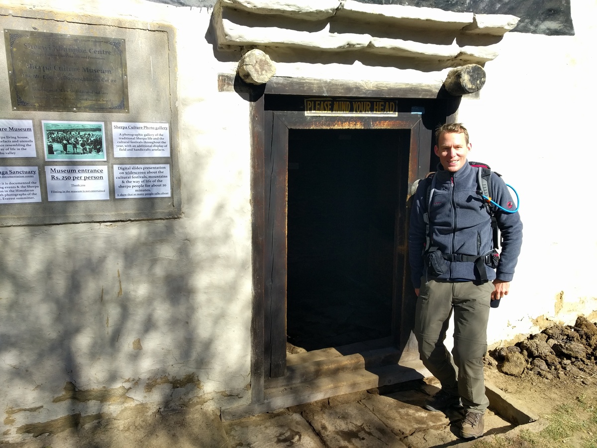 Das Museum zeigt ein Sherpa Haus, ausserdem eine Galerie von Sherpabildern. Sehr interessant! Auch Reinhold Messner ist dabei, Manraj hat aber noch nie von ihm gehört… dafür kennt er viele der Sherpas persönlich. Einer der Sherpas die bereits mehrmals am Everest waren, ist der Besitzer unseres Teahouses. Wir können später auch mit ihm sprechen! Beeindruckend.