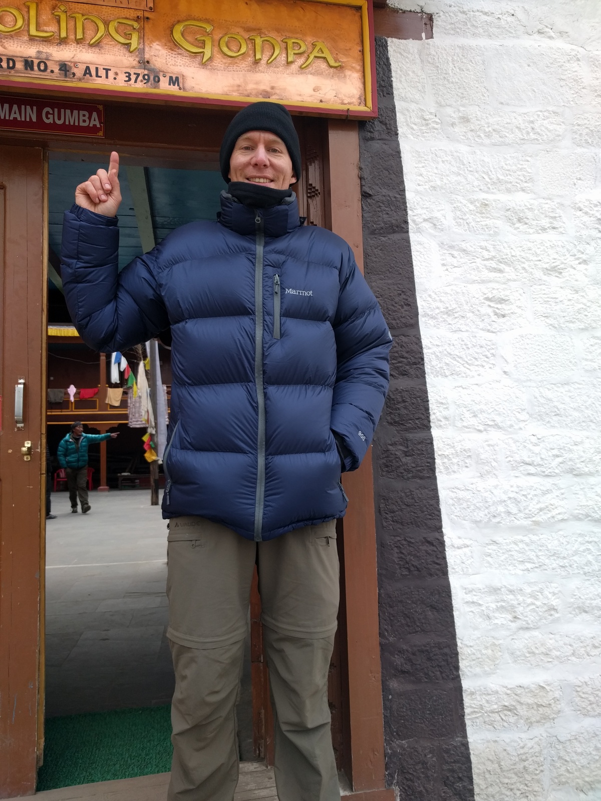Am nächsten Morgen stehen wir um 07:00 Uhr auf um zu Frühstücken (Wasser-Porridge). Die Nächte auf 3800m sind kalt was sich an diesem Morgen eindrücklich zeigt. Die frisch gewaschene Hose von Manraj muss er gefroren von der Wäscheleine nehmen und muss sie im Verlauf vom Tag auftauen lassen.