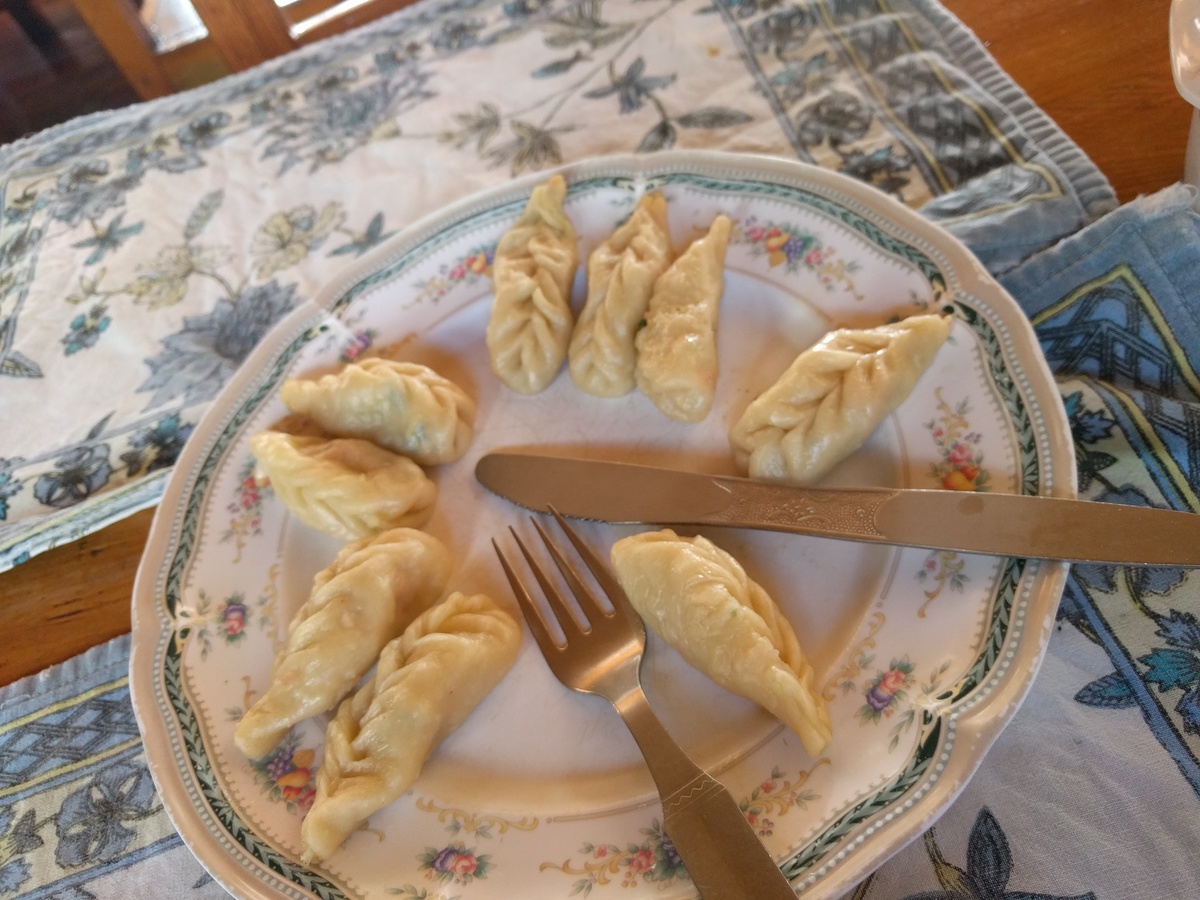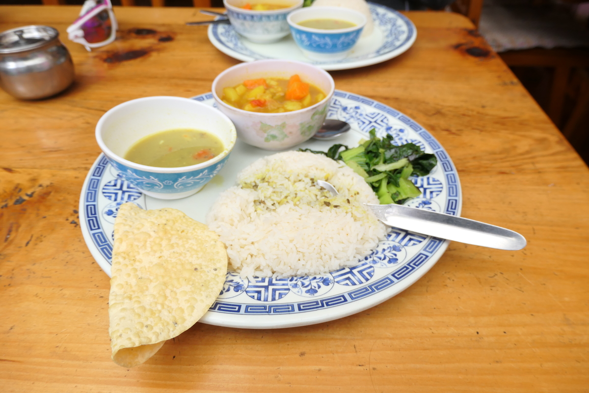Wir nehmen eine heisse Dusche im Duschraum. Es fühlt sich SO schön an die Sonnencreme abzuwaschen. Wir steigen auch beim Essen um: Nudelsuppe und Kartoffeln, sowie vegetarische Momos (eine Art Ravioli) erweisen sich als viel magenschonender.