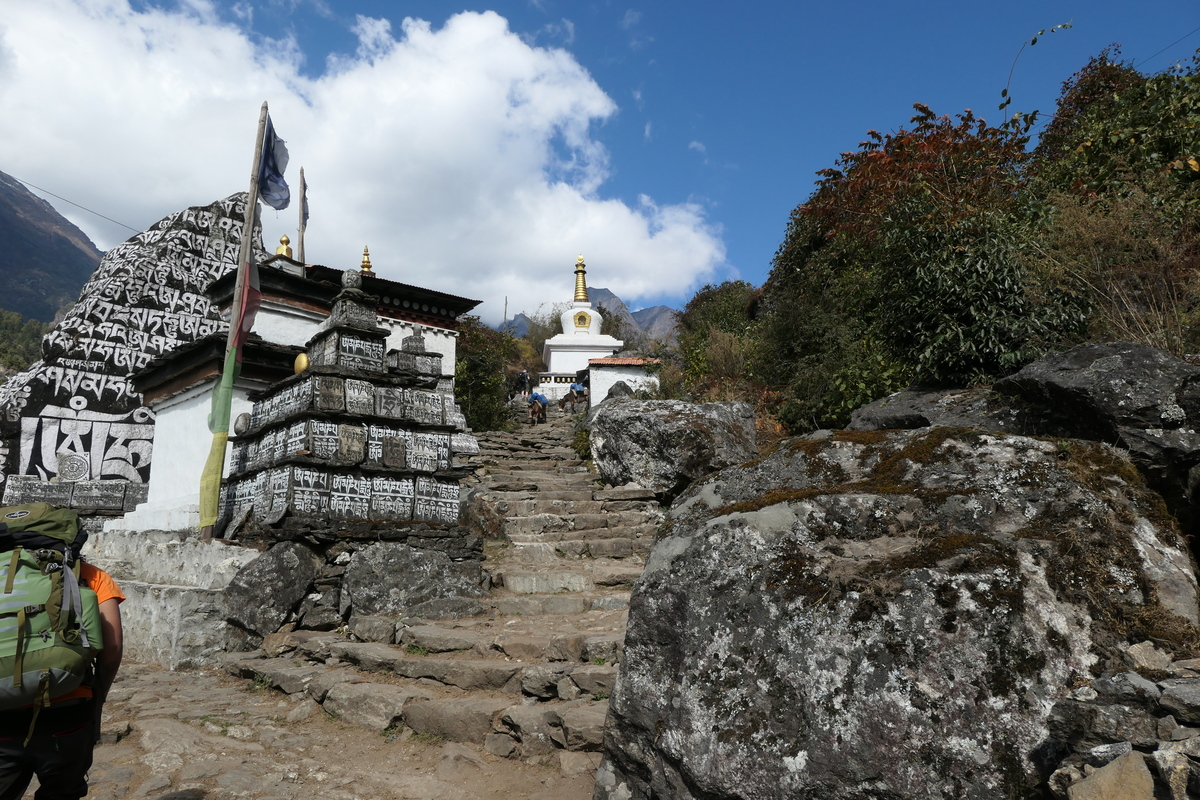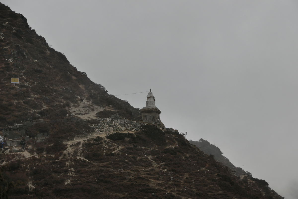Wir sind Manraj nicht schnell genug, beeilen uns aber durchaus. Der Weg scheint sich immer länger und länger bergauf zu ziehen. Scheinbar sind wir aber wirklich recht langsam. Unser Träger kommt uns wieder entgegen. Er hat sich offensichtlich schon Sorgen gemacht wo wir bleiben. Unseren Daypack geben wir aber nicht ab zum Tragen. Leider haben diese Aufstiege heute und die Eile die Konsequenz, dass wir völlig ausgelaugt und erschöpft in Pangboche ankommen.