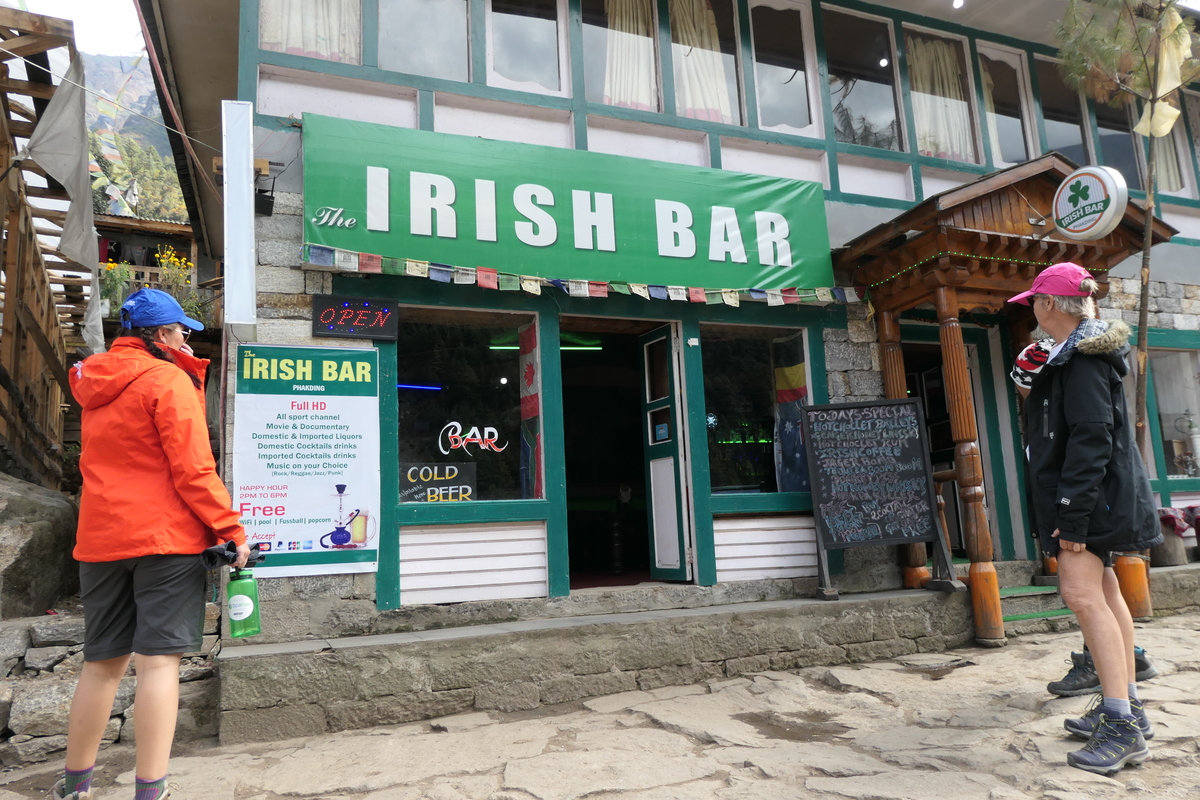 Unser Teahouse ist riesig, wir haben sogar ein Zimmer mit Bad. Richtiger Luxus. Aber auch Namche selbst ist eine “verrückte” Stadt. Es kommt einem tatsächlich wie eine Stadt vor, mitten hier abgeschieden in den Bergen. Viele Geschäfte, viele Bars.