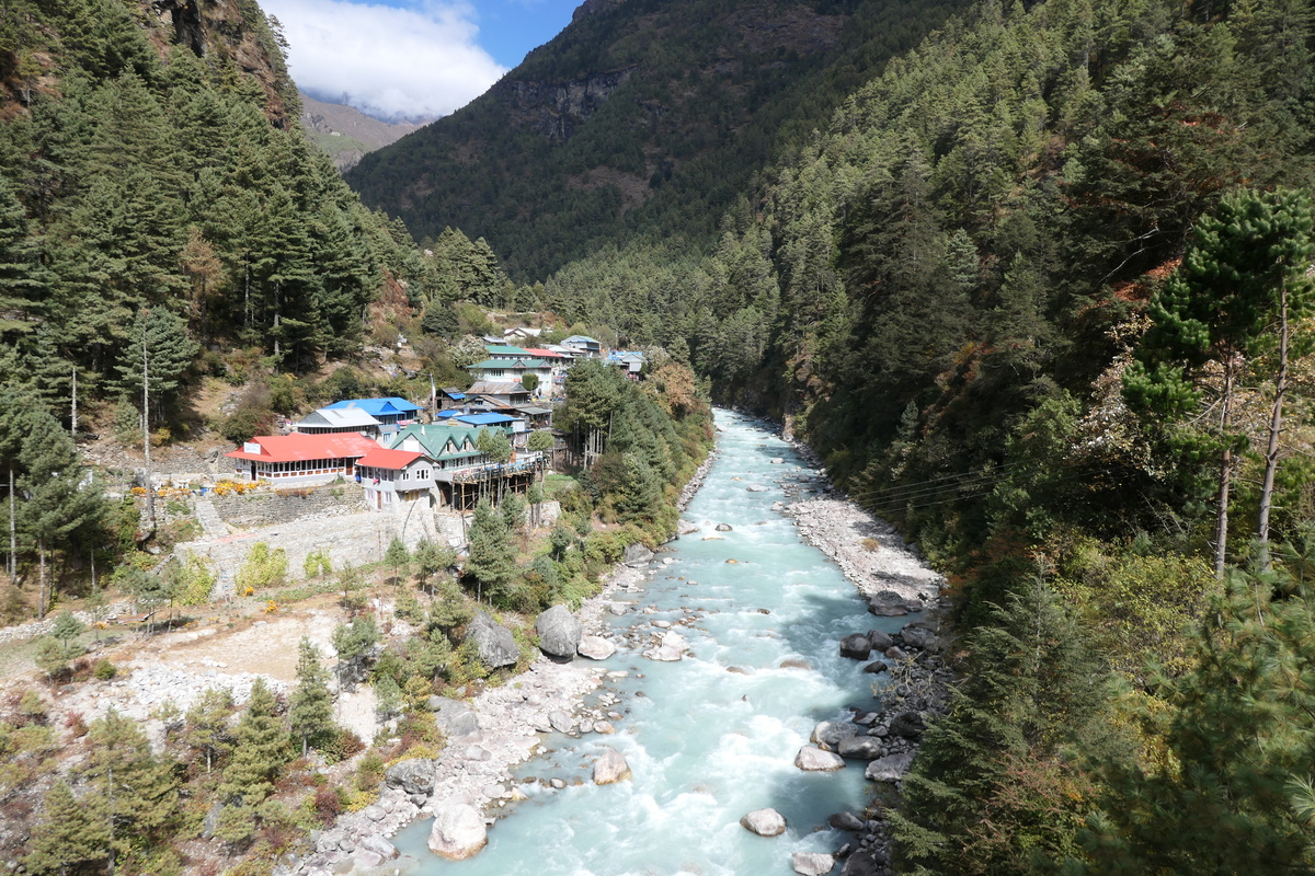 Der zweite Tag ist angeblich einer der härtesten. Es geht zuerst relativ “flach” nach Jorsalle (2600m), dann nach dem Mittagessen wirklich hart bergauf nach Namche Bazaar auf 3500 m. Namche Bazaar ist ein wirkliches Zentrum in den Bergen, eine richtige Stadt. In Jorsalle könnten wir notfalls auch bleiben, dort gibt es einfach nicht so schöne Teahouses. Danach schlafen wir auf den harten Betten in der Kälte. Die Polarschlafsäcke sind sehr gut, wir sind gut eingepackt. Wir freuen uns auf die kommenden Tage, es macht Spass zu laufen, sich auszupowern.
