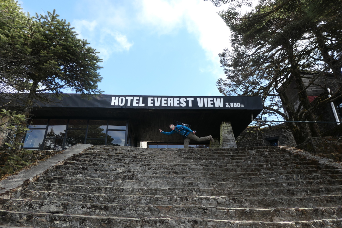 Unser Weg führt uns nach ca. 1.5 Stunden zum Everest View Hotel (3880m) mit einem beindruckend Blick auf den Mount Everest. Das Hotel wurde von und für Japaner gebaut welche sich via Helikopter direkt für eine Nacht auf den Mount Everest fliegen lassen. Manrajs Meinung dazu ist ganz klar: lächerlich! Aber wer das Geld hat…